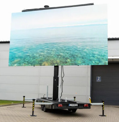 Vår populära LED-trailer har en skärm på 3,5 x 2 meter och kan höjas upp till runt 190 cm från marken till skärmens underkant.