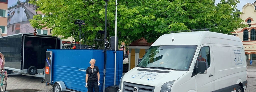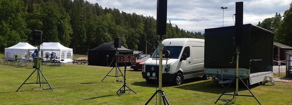 Förutom det finns projektor med duk, drönare, belysningar med ljusbord, olika tidtagarur med eller utan stativ, kameror, videokameror och såklart mixerbord, headset, mikrofoner och annat som behövs för att allt ska fungera enligt ert önskemål.
