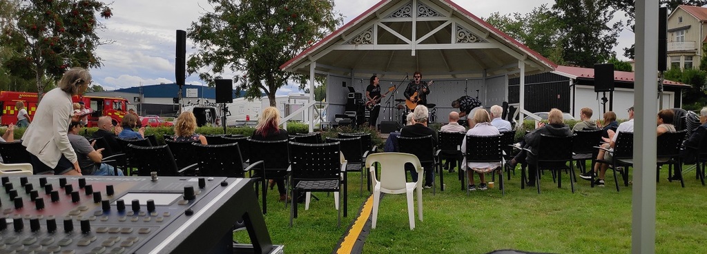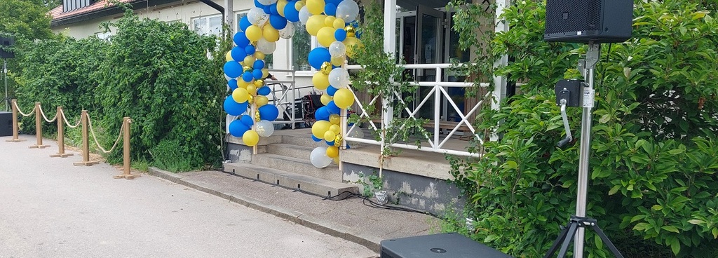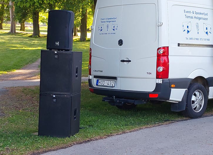 och vi har även flera portabla högtalare på hjul när man behöver vandra runt och nå ut med ljud.
