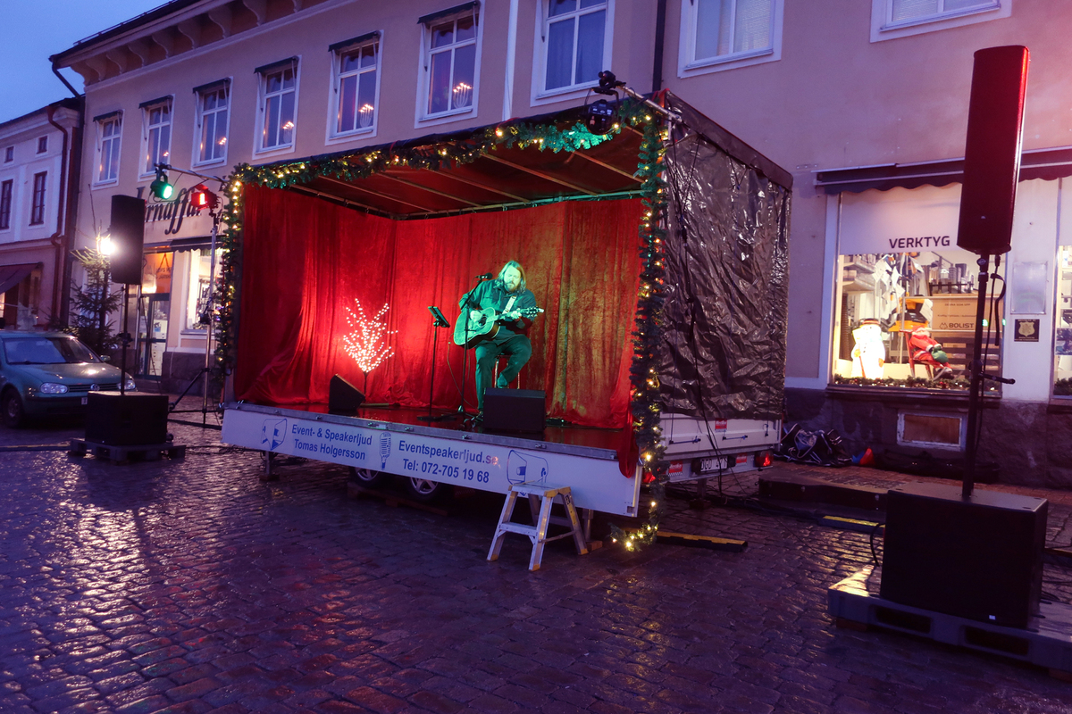 Vagnen levereras med olika utrustning beroende på behov. Det finns extra golv när man behöver större golvyta. Vi har bakgrundstyg att sätta upp när man vill ha det lite mysigare. En hög sittpall, modell barstol, kan följa med om trubaduren önskar. Självklart går det också att få scenen fullt utrustad med ljud och ljus!